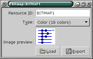 Since Guikachu is not an image manipulation suite, you have to create and edit the picture files externally. This is done by creating an image file in your application of choice, then clicking on the Load button in the Bitmap Editor. A simple file selector window pops up, allowing you to load the image file. Once it's loaded, the image data resides in the .guikachu file itself, so everything stays in one single easy-to-transport file. To re-create the standalone image file (e.g. for further editing), click on the Export button.