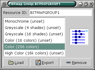 Different Palm handhelds may have different screens, and not every device may be capable of displaying pictures in hundreds or thousands of colors. The Bitmap Group resource allows you to pack pictures of different depth into a single resource. At run-time, the most colorful one will be selected, based on the actual Palm device's screen capabilities.