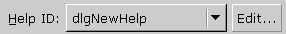Some properties are references to other resources, for example the "Help" property of a dialog points to a string resource that will be displayed when the user taps the help icon. Setting these is done by selecting from the drop-down list of available resources of the appropriate type. Changing a resource's ID automatically changes every other property pointing to it.