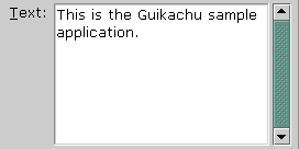 Single-line string properties are edited by simply focusing the text entry (by clicking on it, or pressing the Alt key and the underlined letter of the left-side label) and typing. Changes are instantly applied, which is very useful for widgets, since you can see the results in real time in the form preview.